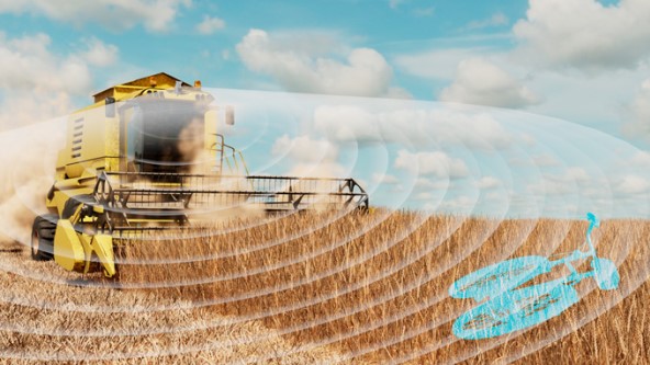 As an IP67/IP69K device, Turck's radar scanner can even be mounted on the outside of the combine harvester, and even directly on the threshing unit. In the application example, the sensor is mounted on the threshing unit and directs its detection angle to the field in front of it. With a range of 15 meters and an opening angle of 120 degrees on the horizontal axis, the sensor detects animals, large stones or objects lying in the field. Metals and also bodies reflect radar beams more intensively than wheat. The sensor recognizes this difference and issues a warning. Both opening angles can be set narrower by adjusting the parameters – asymmetrical angles are also possible. Up to six warning radii or three signal fields can be set and assigned to the two switching outputs.
