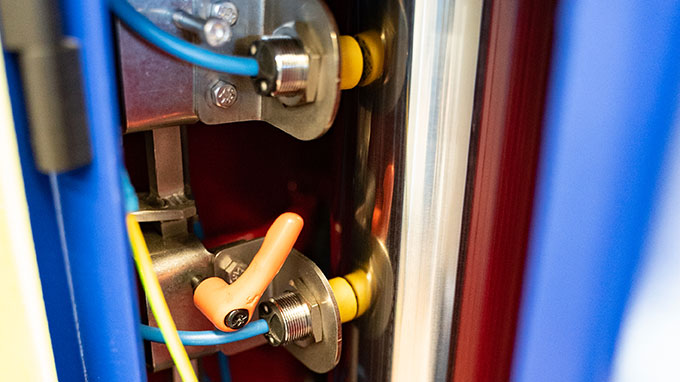 Anyone wanting to look for the smallest Turck components in a Niemann machine must look really closely. With a housing length of 31 millimeters and a height of six millimeters, the BIM-UNT-AY1X magnetic field sensor is hidden in the cover hinge of a tank fill opening. This detects here whether the cover is open or closed. In addition, a specially designed inductive sensor must withstand wear in the drive. This scans a switch lug in the very demanding atmosphere.