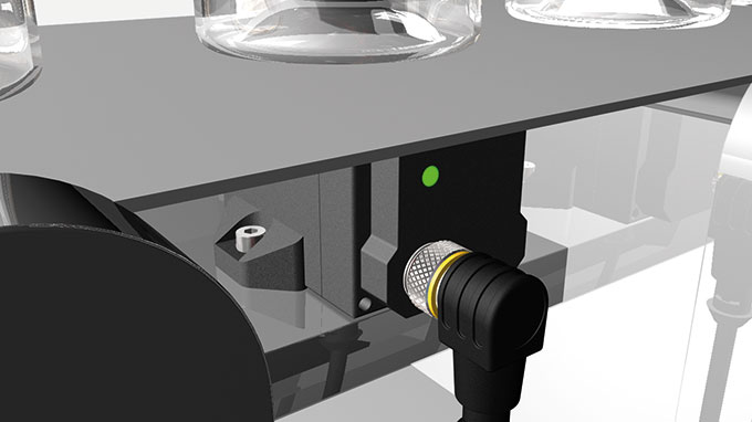 Bottles with minor damages are introduced as test bottles into the production flow and must be recognized as defective by the inspection machines. If this is not the case, the machine needs to be checked and the the test bottle needs to be removed reliably from the production line. RFID technology has the advantage that the data carriers can be fixed inside the bottle safely and can be read even without direct visual contact. With this technology it is also possible to remove single bottles and replace them with new bottles after a specific number of test cycles.