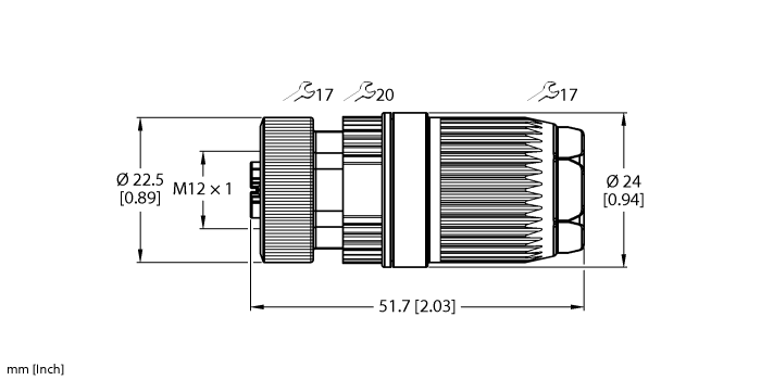 | Connector A | Female, M12 × 1, Straight, L-coded |